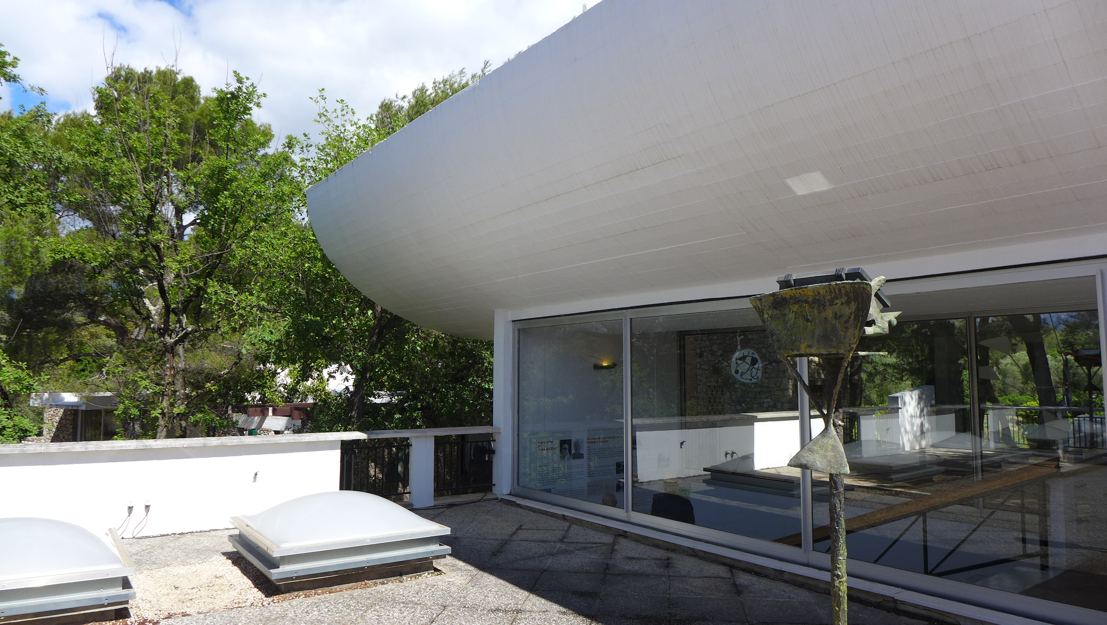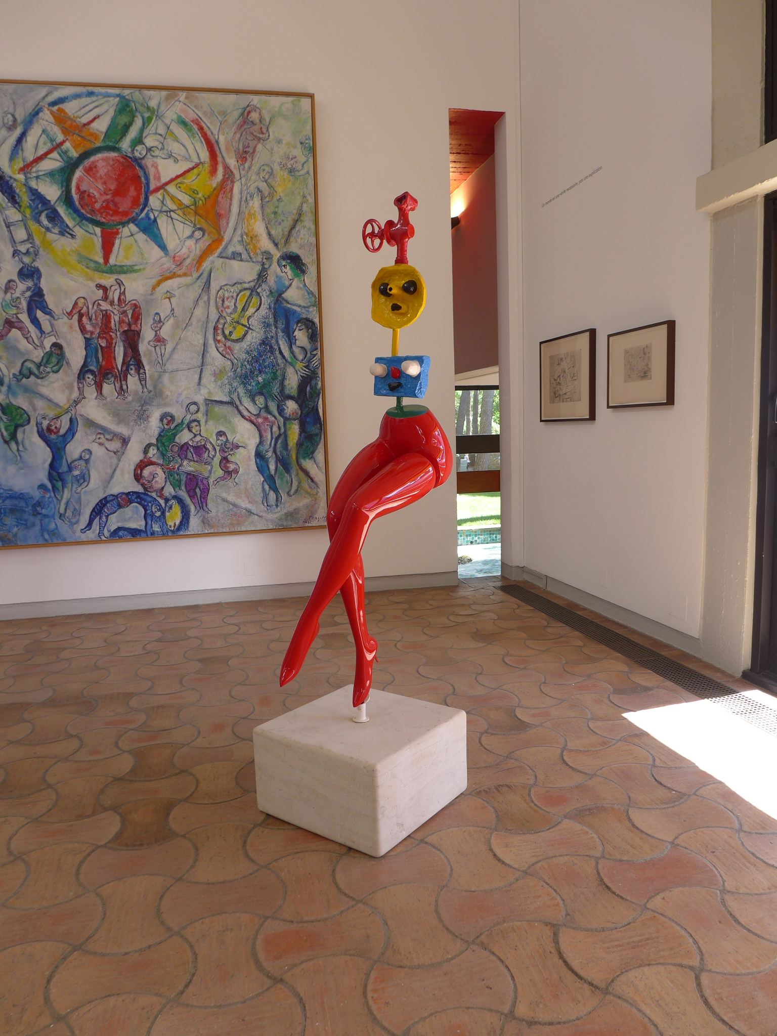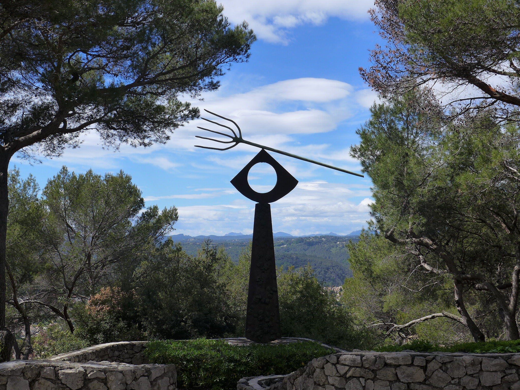 In the mean time, as promised, here are a few images of our experiences today. We started out visiting the Fondation Margerite et Aime Maeght in Saint-Paul de Vence. Two local art philanthropists who were personal friends with Joan Miro among others. Designed by the same architect who designed the Miro museum in Barcelona, Spain, Joseph Lluis Sert, a museum we visited a few years ago on a trip to Barcelona, the building had a very familiar feel. The building is full of pieces by Chagall, Miro (who has many pieces in the spectacular sculpture garden surrounding the building), Calder, Braque and many more. While we were there, we had the treat of watching an installation of a new Christo Vladimirov Javacheff and Jeanne-Claude piece in the sculpture garden–brightly painted oil drums stacked in a pyramid. Not much information on the piece yet but it was interesting to watch the workers while they constructed the piece.
