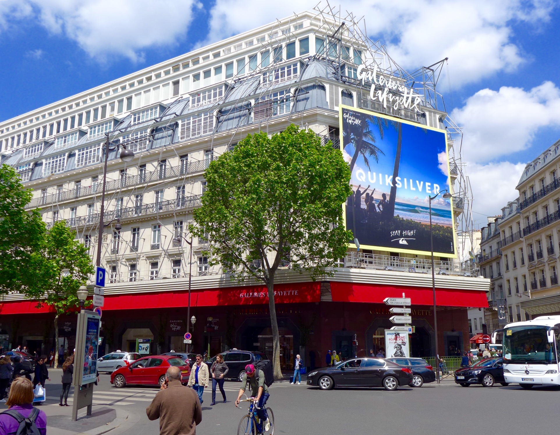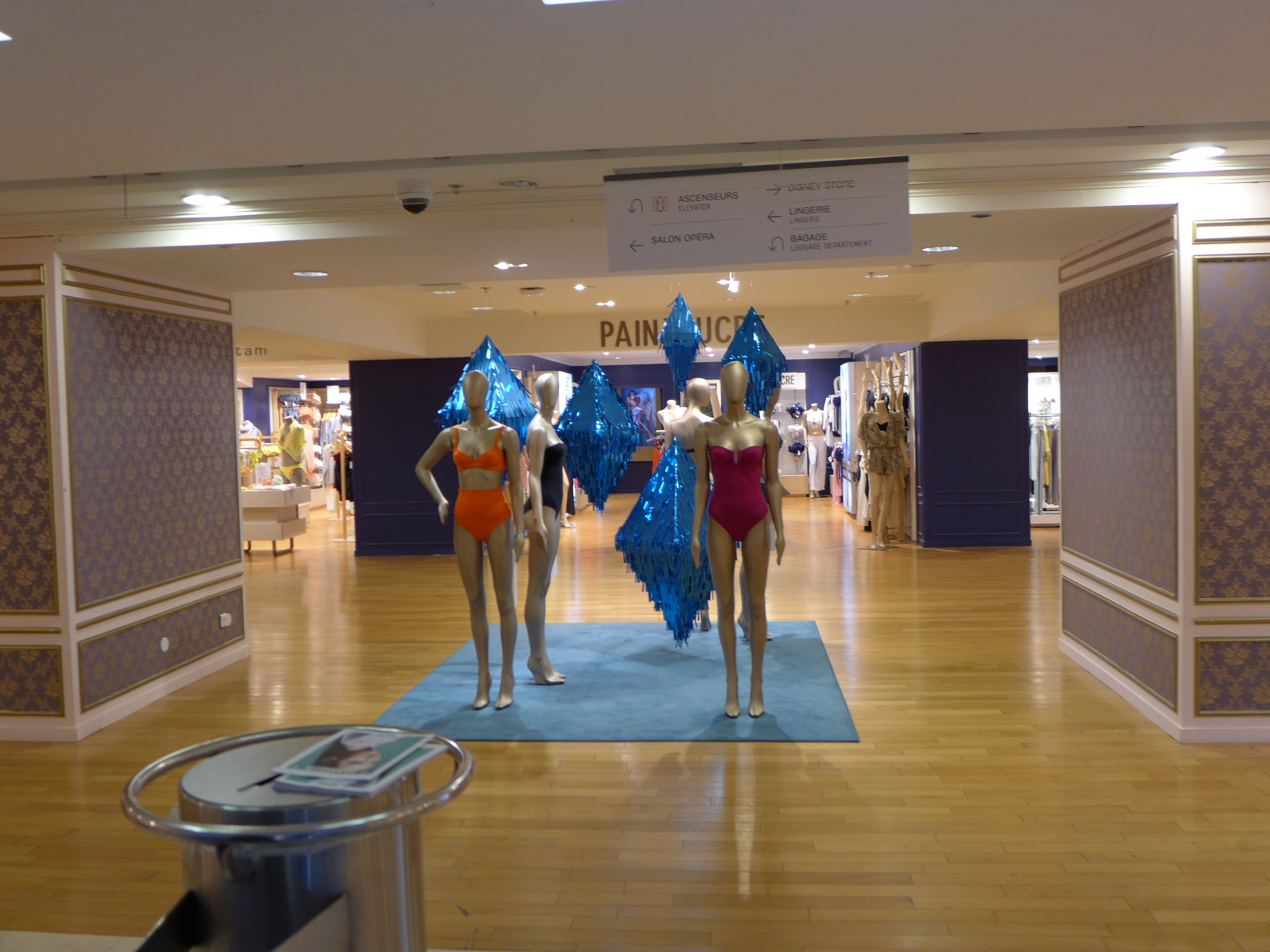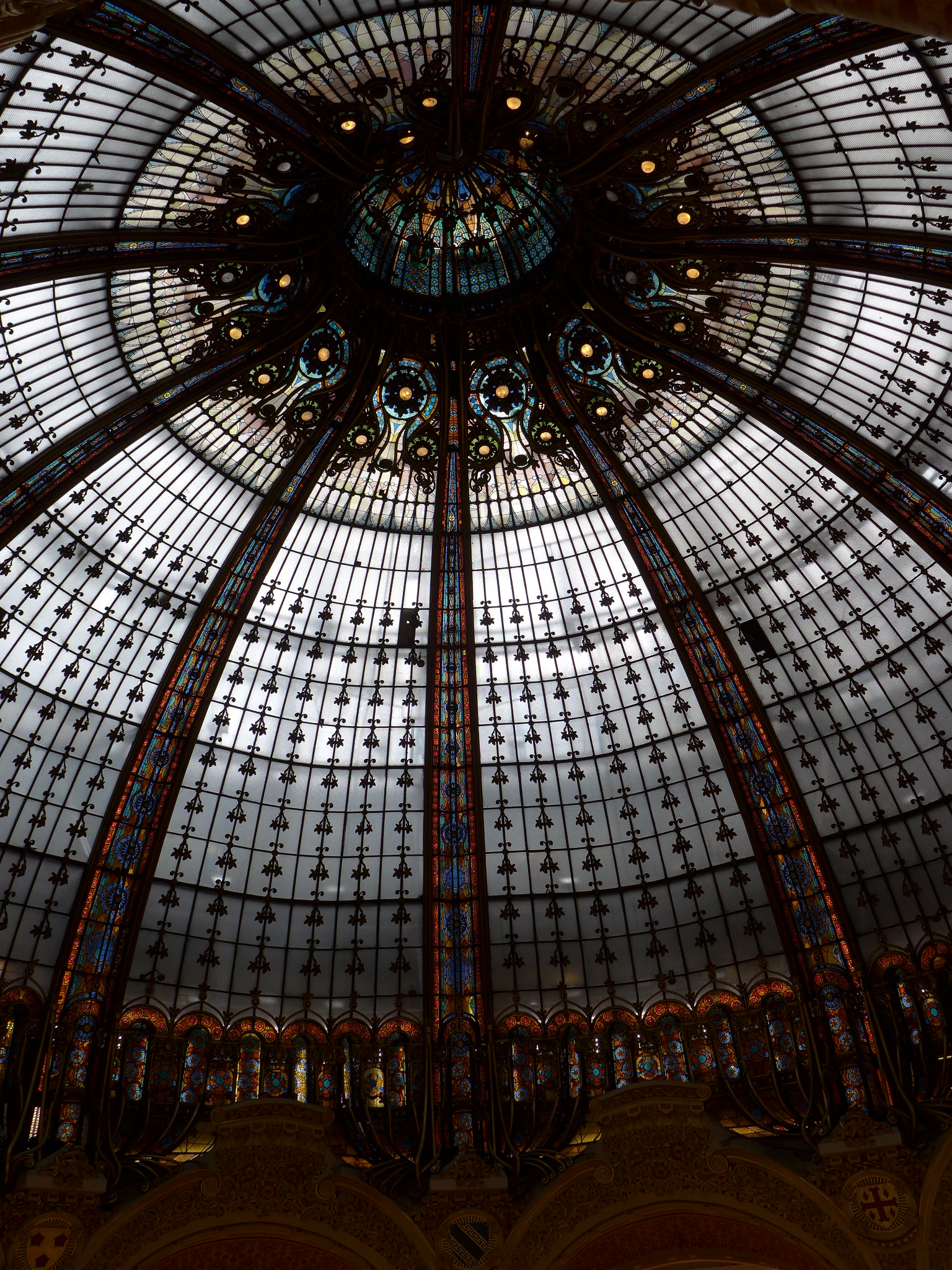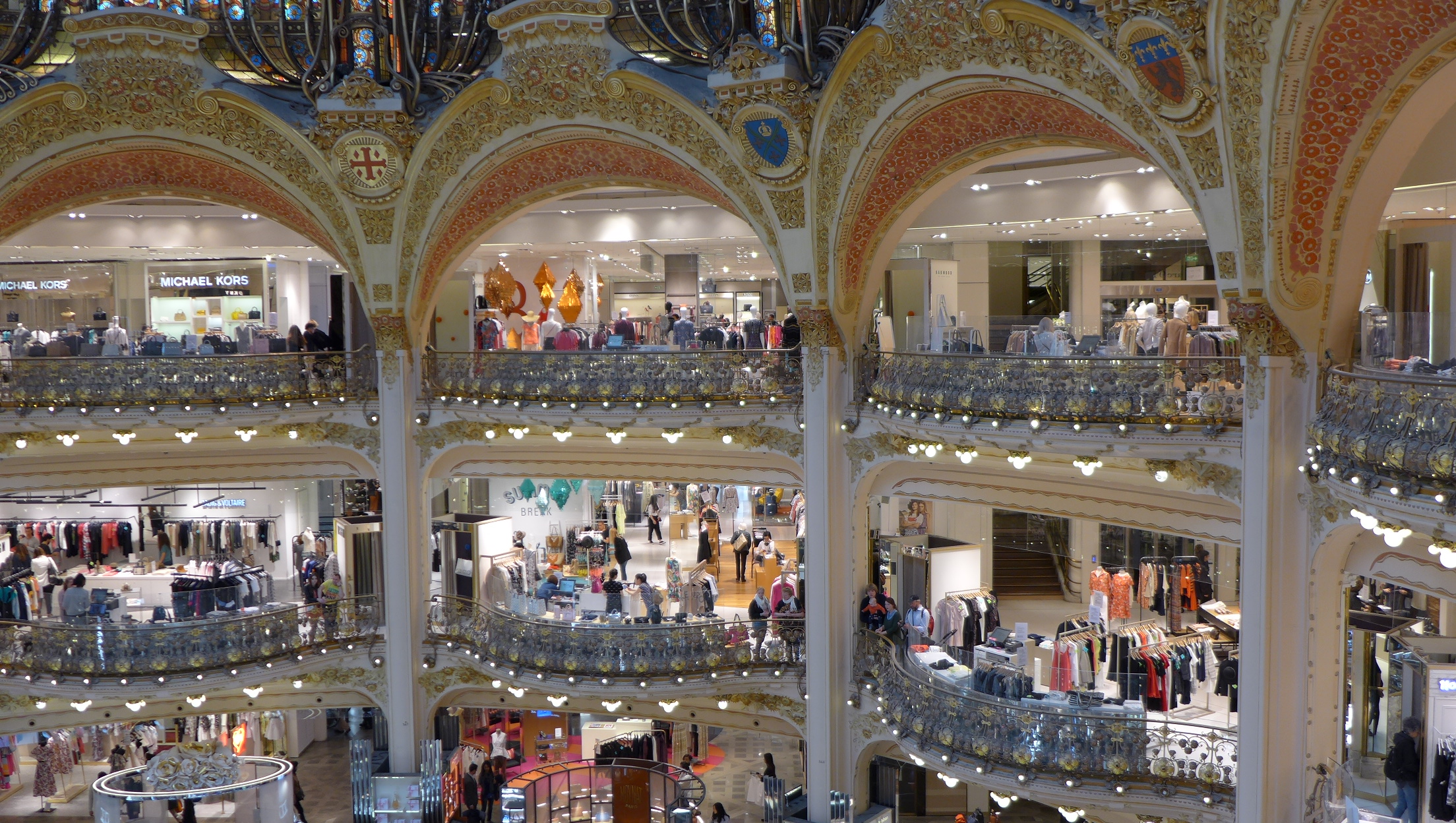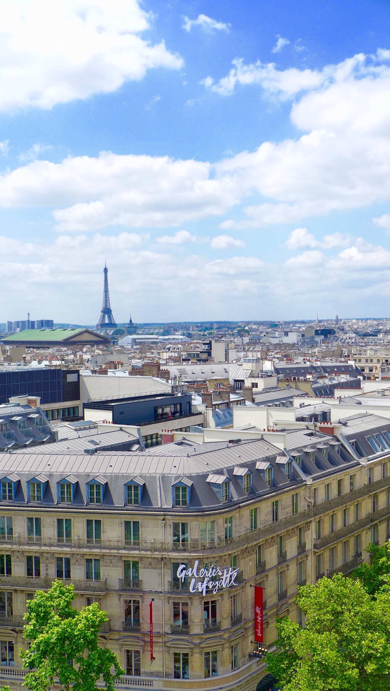 From Rodin’s Museum, we took a cab (something was going on at the subway stop we were planning on using) over to the flagship store for France’s largest department store chain (Galleries Lafayette) called Boulevard Haussmann located in the 9th arrondissement. It is near the Paris Opera House which was on our list of “must visits” for the day. Bring your credit cards! Many of Paris’ highest end stores are located under one roof on 7 levels spanning several city sized blocks. They also have a mixture of very nice restaurants and a roof deck that gives you a wide expansive view of the city from the Pompidou Center to the Eiffel Tower. If you looking to do some high end shopping or just to oogle at the high end fashions and accessories, this is a good place to do it. The newest trends in fashion are all on display in one location! Oh and you will be impressed by the 1912 Art Nouveau skylight and decorative staircases for added benefit!!