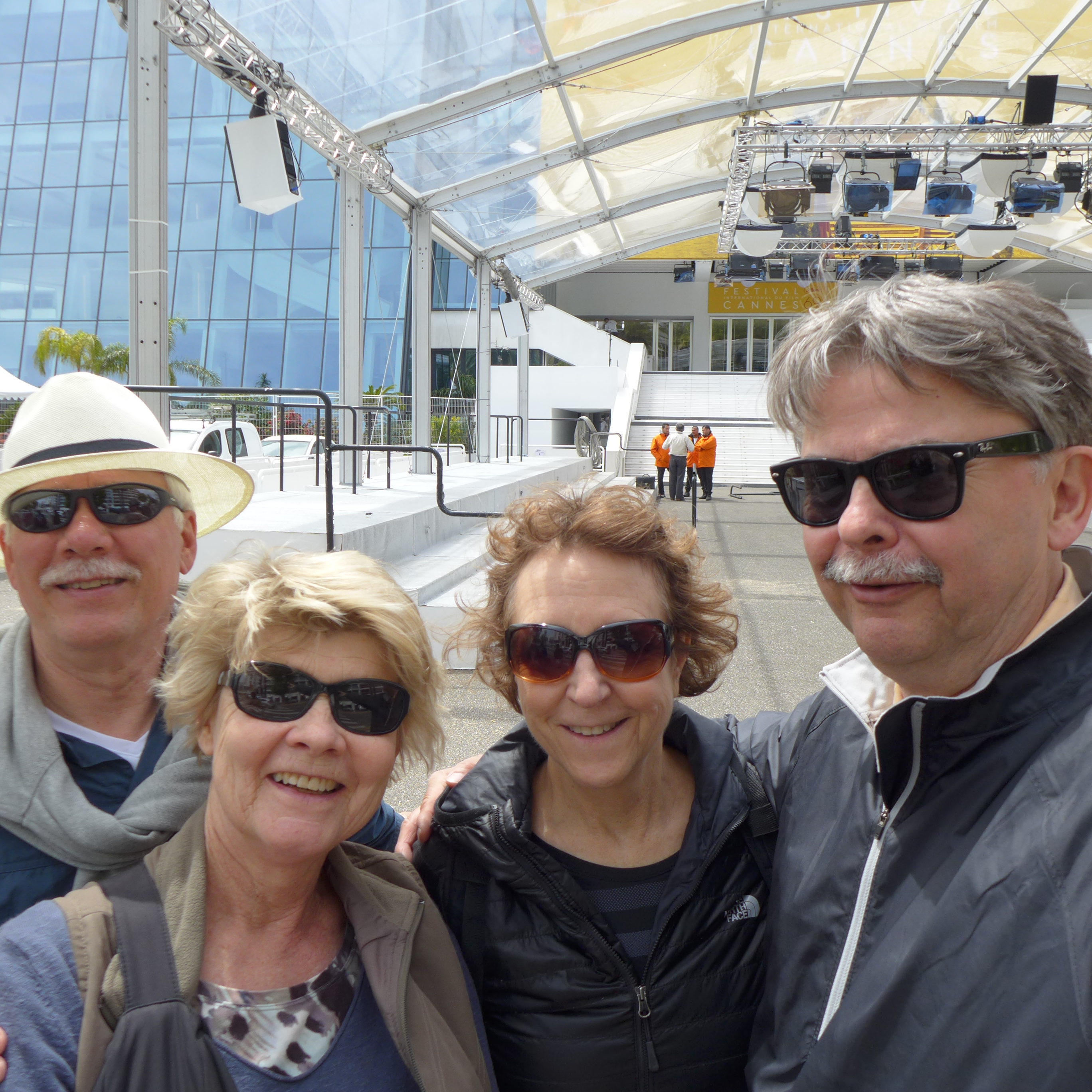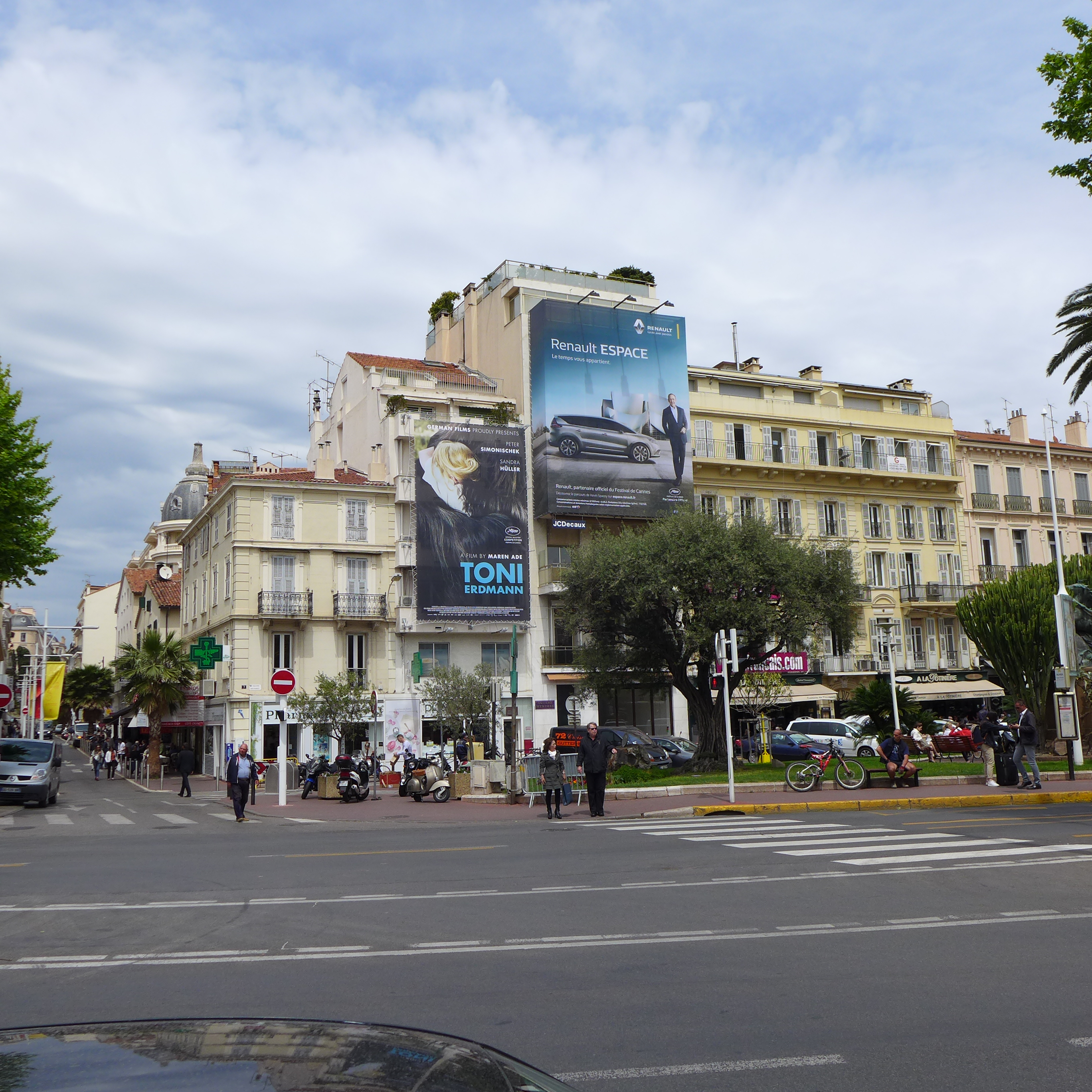 After a quick lunch at a little corner cafe–Cafe Cristal–of pizza and coq monsieur et frites, we took a liesurely stroll along the promenade to the site of the festival. No signs of celebrities yet…just some billboards…but there was definitely excitement in the air.