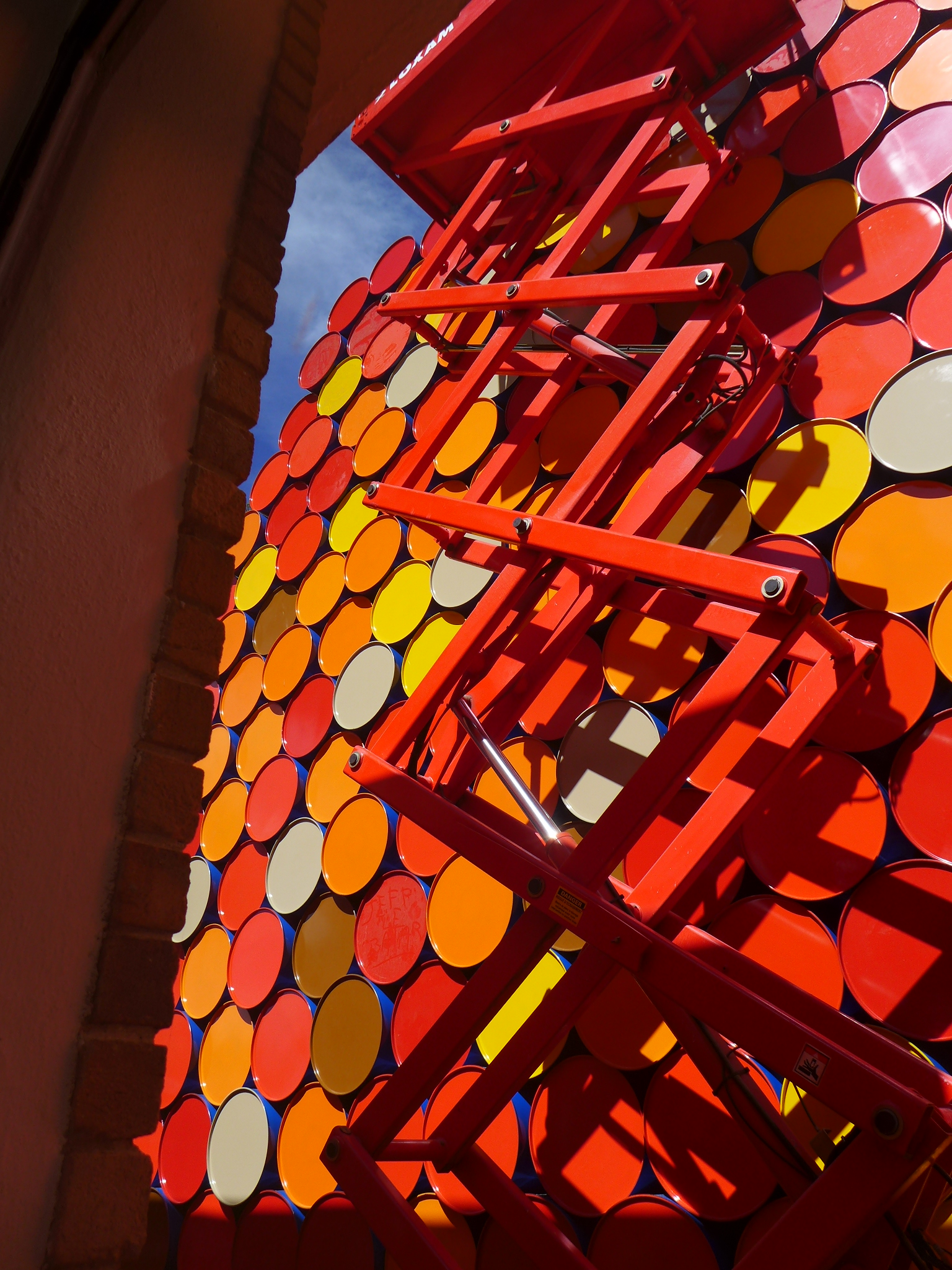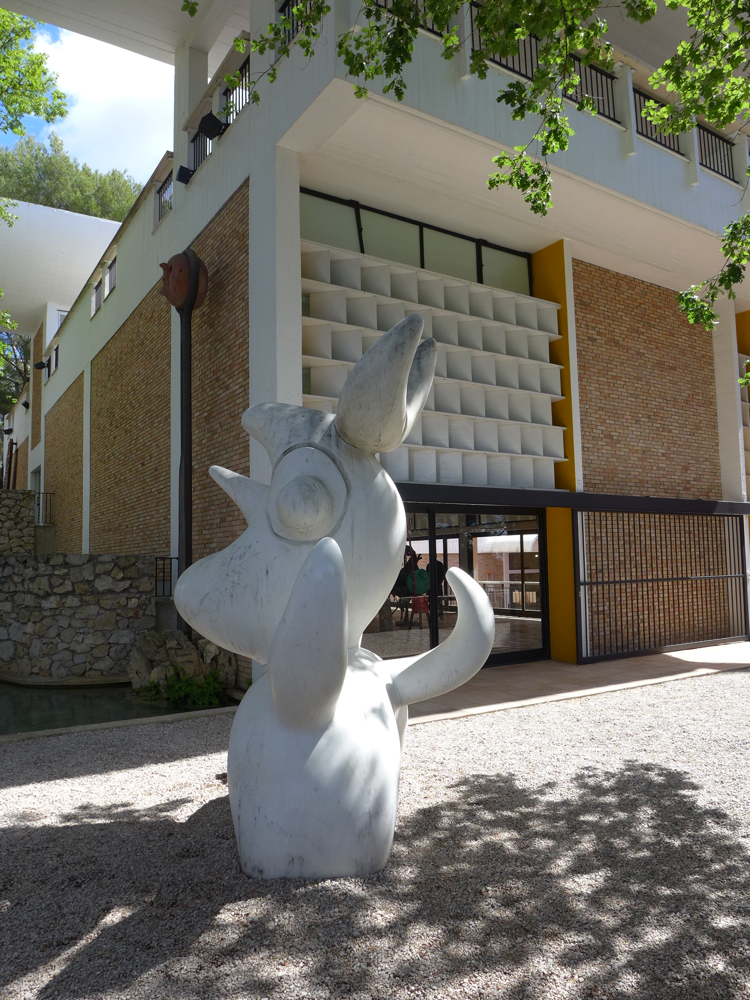 In the mean time, as promised, here are a few images of our experiences today.  We started out visiting the Fondation Margerite et Aime Maeght in Saint-Paul de Vence.  Two local art philanthropists who were personal friends with Joan Miro among others. Designed by the same architect who designed the Miro museum in Barcelona, Spain, Joseph Lluis Sert, a museum we visited a few years ago on a trip to Barcelona, the building had a very familiar feel.  The building is full of pieces by Chagall, Miro (who has many pieces in the spectacular sculpture garden surrounding the building), Calder, Braque and many more.  While we were there, we had the treat of watching an installation of a new Christo Vladimirov Javacheff and Jeanne-Claude piece in the sculpture garden–brightly painted oil drums stacked in a pyramid.  Not much information on the piece yet but it was interesting to watch the workers while they constructed the piece.