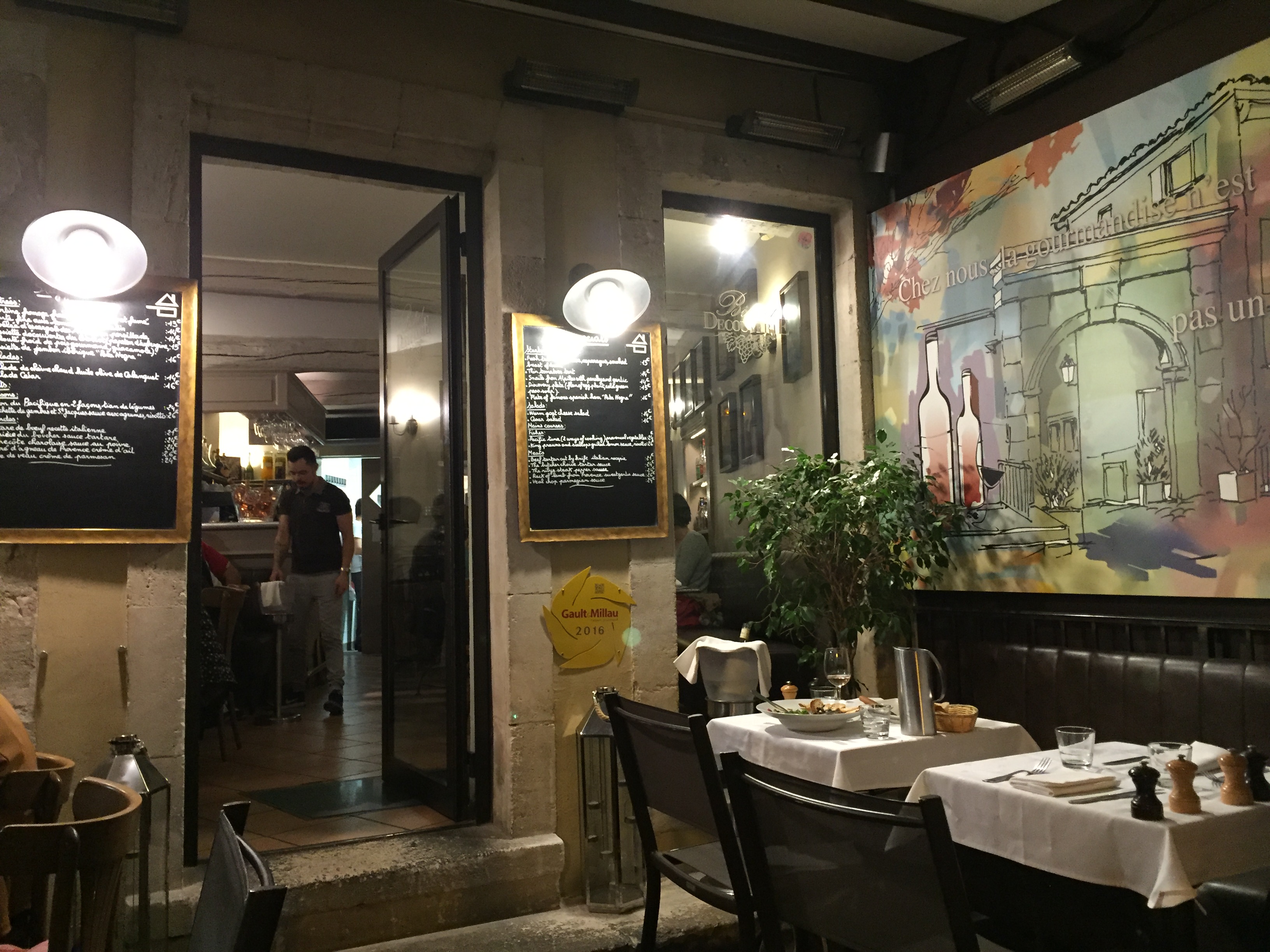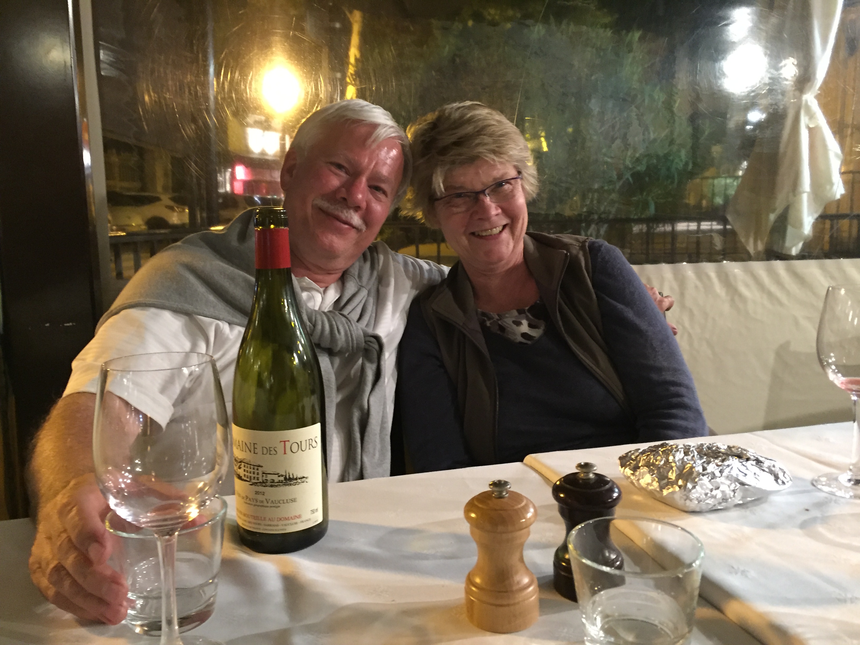 Once settled into our new home for the next four nights, we went into town for dinner at a locally owned restaurant called Le Bistrot Decouverte at the recommendation of our hosts. I would definitely echo the 4 star review you can read on Yelp. St. Remy de Provence night life is pretty much made of wine bars and restaruants but for us, that was just fine. We were still feeling the effects of our midwestern roots (at least on the what time of day it was) and by the time we made it back to the house, we were bushed. Note to self…the last meal of the day after a long 36 hour day involving six back to back meals should be light.